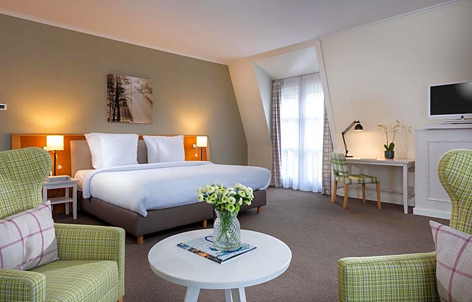 The spacious suite features 1 bedroom and 1 bathroom with a bath and free toiletries. The suite has carpeted floors, a seating area with a flat-screen TV, soundproof walls, a coffee machine as well as garden views. The unit offers 2 beds.